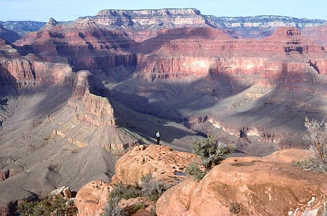 The hike east to Bass Canyon is typical Tonto Trail hiking: into a side canyon, then out onto the plateau. Side canyon, plateau; side canyon, plateau; over and over again. The plateau, with its broad vistas and stunning views of the Colorado River a thousand feet below, is as rewarding as the side canyons are grueling. Eventually, you reach Bass Canyon for the climb back up to the South Rim. Pray that it hasnt rained up top during your stay, because the road through Pasture Wash can swallow up jeeps when its muddy.